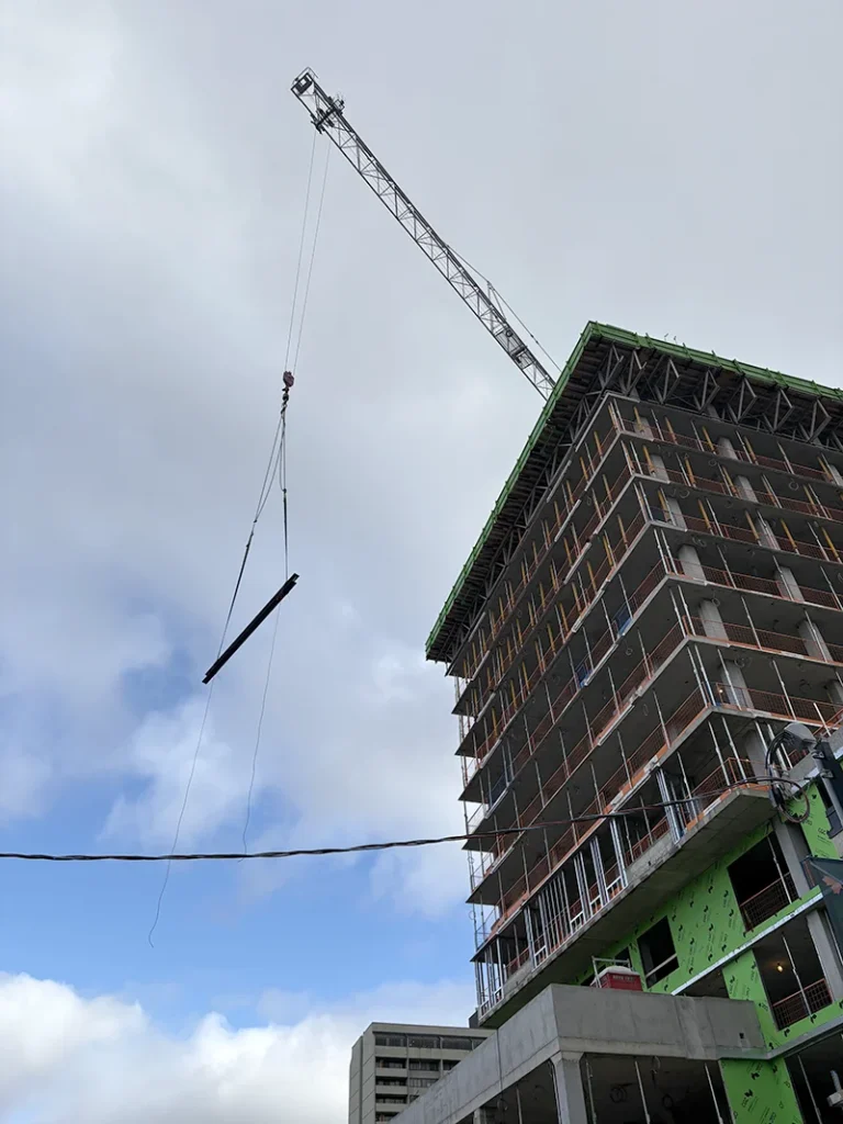 A highlight of the day was watching the final beam rise to the top of the building. The beam was signed for posterity by key project contributors, symbolizing the collective effort and expertise behind this development.